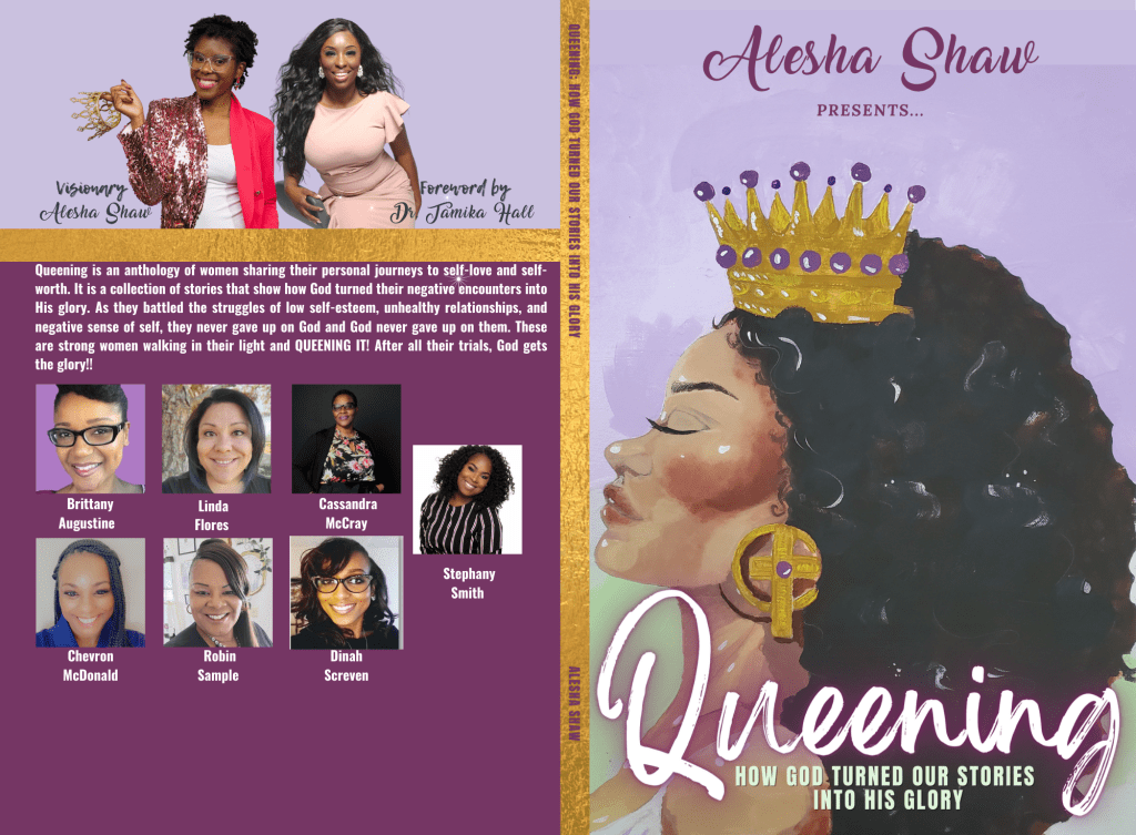 Queening is an anthology of women sharing their personal journeys to self-love and self-worth. It is a collection of stories that show how God turned their negative encounters into His glory. As they battled the struggles of low self-esteem, unhealthy relationships, and negative sense of self, they never gave up on God and God never gave up on them. These are strong women walking in their light and QUEENING IT! After all their trials, God gets the glory!! AVAILABLE NOW! Click the link below to purchase!